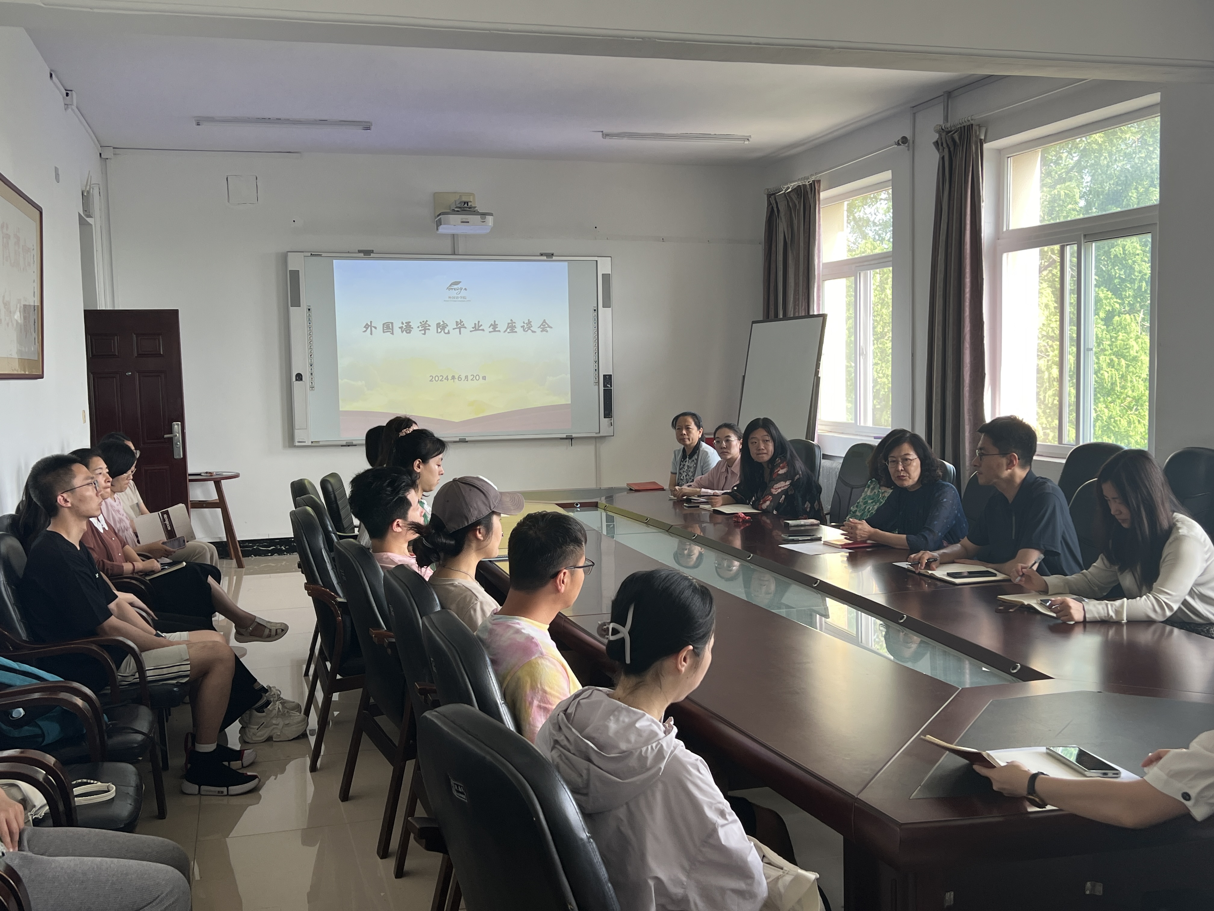 在座谈会的最后,学院党委书记孙云笑对毕业生提出3点希望。一是要在专业上持续深耕,加强跨文化交流实践,提高讲好中国故事、传播中国声音的能力。二是要肩负责任使命,在工作、社会、家庭中履职尽责,与时代同向同行。三是要带着学院的嘱托与祝福,追求卓越,实现个人价值,过好自己的幸福人生,为社会的发展贡献自己的力量。