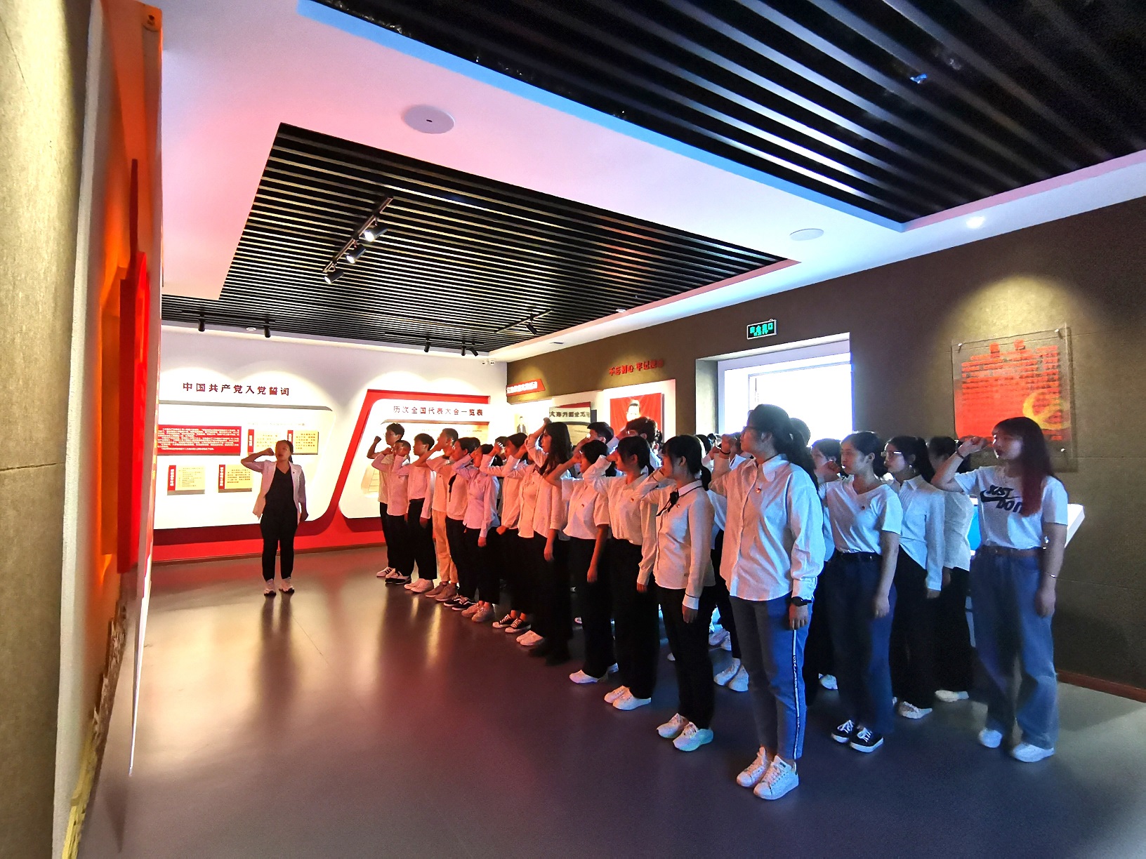 2021年6月30日,乐鱼网页版党委组织师生党员赴我校思想政治教育中心进行学习参观,并开展新党员入党宣誓和老党员重温入党誓词活动。