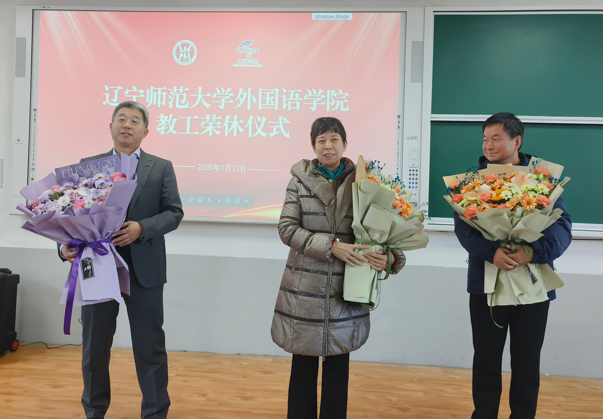 仪式在温馨的氛围中拉开帷幕,青年教师代表手捧鲜花,恭敬地献给荣休教工,以花寄情,表达对前辈们的敬重与感恩。荣休教工代表许凤才、邵艳姝和李炜老师满怀深情地回顾了在学院工作的点点滴滴,表达了对教育事业的无限热爱和对学校、学院以及同事的深厚情感。