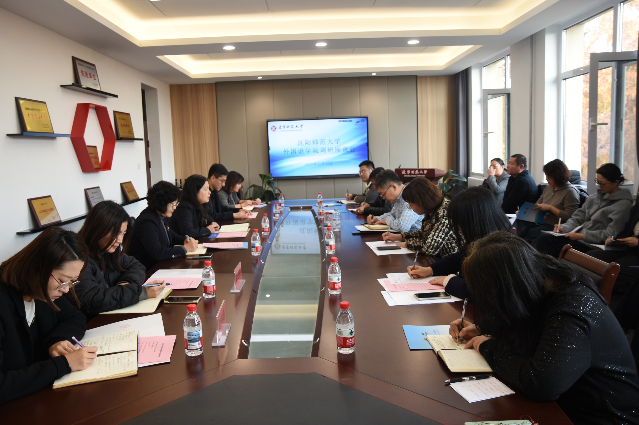 11月12日,沈阳师范大学乐鱼网页版院长潘佳宁教授率领导班子及各系部负责人来乐鱼leyu(中国)调研。乐鱼leyu(中国)院长姜晖教授携全体领导班子成员、各系部主任在外语楼411会议室与来访嘉宾座谈,共商“十五五”时期外语学科高质量发展路径。