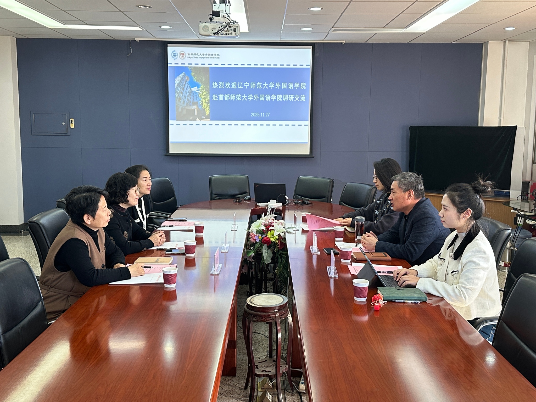 为深化校际合作,推动学科建设与人才培养高质量发展,拓宽就业渠道和提升就业质量,乐鱼网页版党委书记孙云笑,研究生辅导员周晓霞、周康一行赴首都师范大学进行调研。11月27日上午,与首都师范大学乐鱼网页版院长王宗琥、党委副书记王亚楠、研究生辅导员张祎等进行调研座谈。双方围绕课程思政、人才培养、教师教育团队建设、学生管理及就业等相关议题开展了深入而富有成效的交流。