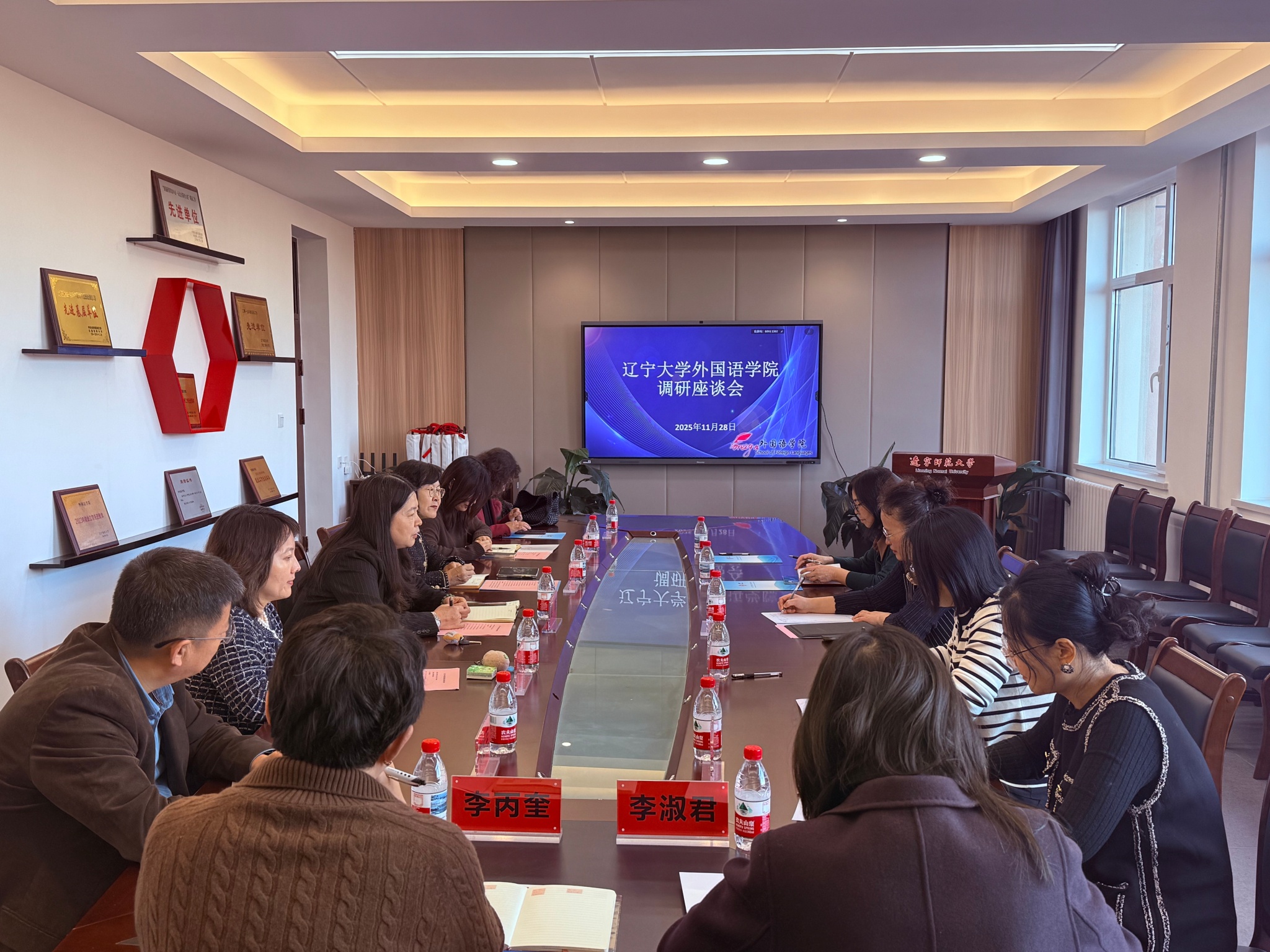 为深化校际学科交流,推动外语学科高质量发展,11月28日,辽宁大学乐鱼网页版院长刘熠带队一行5人来乐鱼leyu(中国)调研,乐鱼leyu(中国)院长姜晖携领导班子、各系部主任于外语楼411会议室进行座谈。